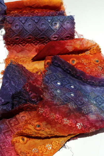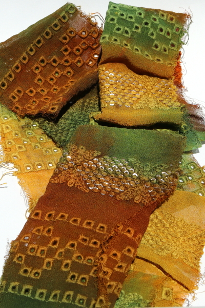 All manner of different emboidered surfaces, each unique. Many uses in your textile in your textile work.