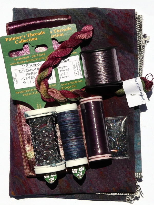 Plus an assortment of hand dyed threads and embellishments in matching colours.