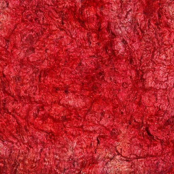 The fibre content is higher than that of silk hankies. The fibres can be spun or felted with the needle (hand or machine), which makes the beautiful character of the Painter's Threads colours particularly effective. In wet felting, they can be used together with wool. You can easily use them to make silk paper, either with a medium such as Jo Sonja Textile Medium, or with CMC paste.