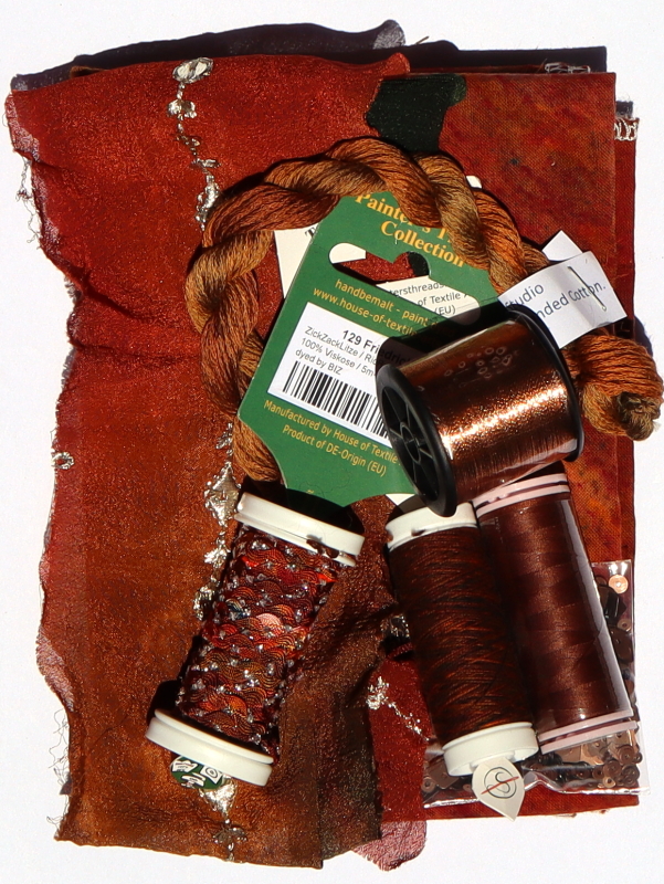 Plus an assortment of hand dyed threads and embellishments in matching colours.