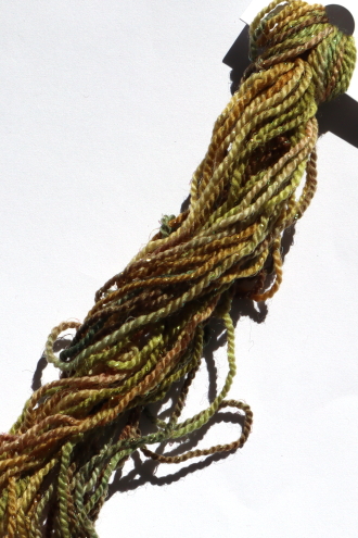 It is comprised mostly of merino wool with a hint of synthetic fiber strands for sparkle.