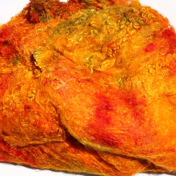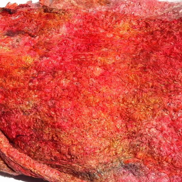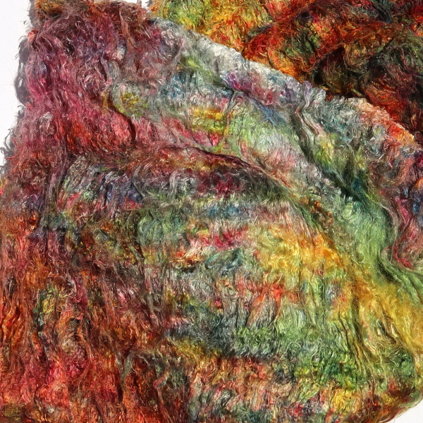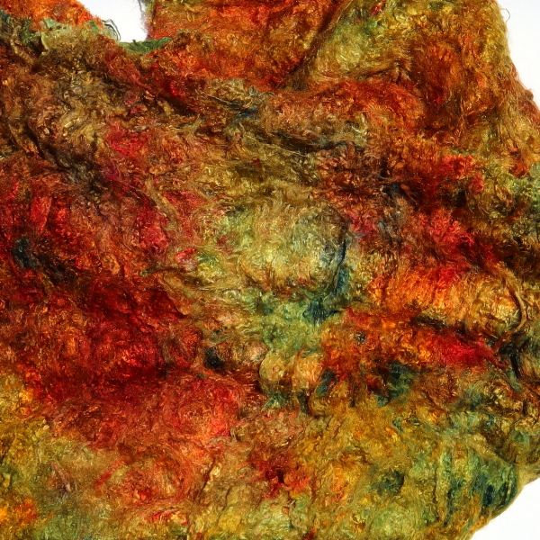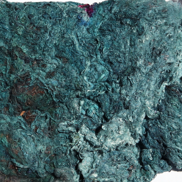 The fibre content is higher than that of silk hankies. The fibres can be spun or felted with the needle (hand or machine), which makes the beautiful character of the Painter's Threads colours particularly effective. In wet felting, they can be used together with wool. You can easily use them to make silk paper, either with a medium such as Jo Sonja Textile Medium, or with CMC paste.