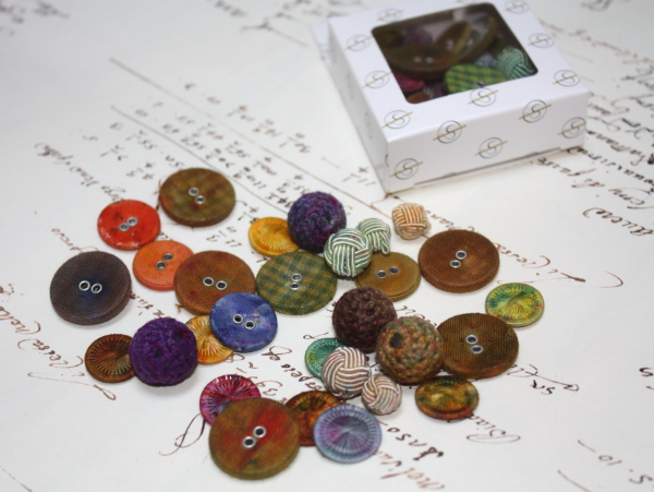 Painters Treats is a box full of thread buttons of different sizes and formats plus textile trimming beads, all hand painted/dyed in assorted colours. This fun mix is wonderful for decorating any fibre or mixed media project, and of course as a closure for clothing or jewellery. Button and bead bases are covered with 100% Cotton or 100% Rayon materials and fibres. Each box contains approximately 30 buttons, all different. Known for their saturated colour palettes named for famous painters, Tentakulum's Painter's Collection is created by their own special form of space dyes. Because of the hand-dyed process, all Tentakulum products blend perfectly because of their subtle colour changes.