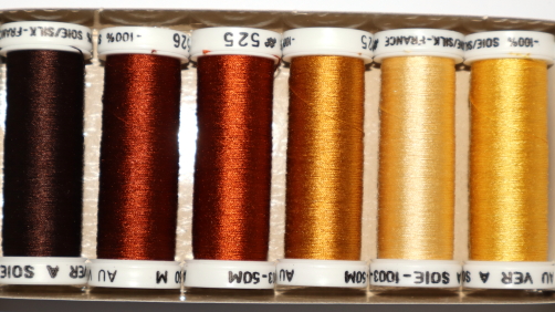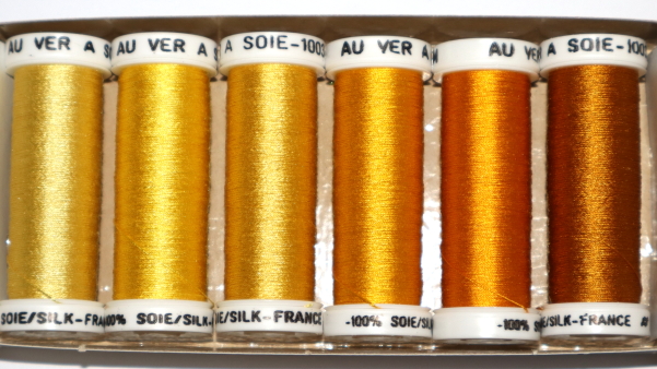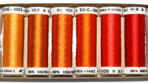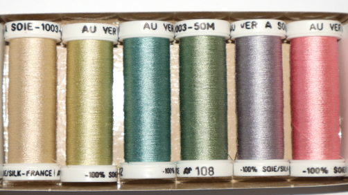 100% tightly twisted spun silk, similar to buttonhole thread. Fabulous for needlework. Trenty three choices of colour themed packs. Made in France.