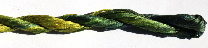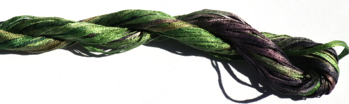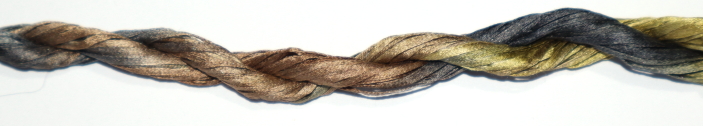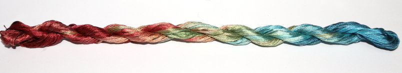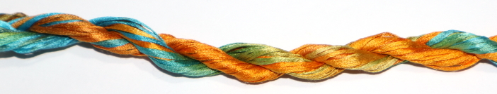 Silken Straw is a hand-dyed straw silk fibre. Silken Straw stitches beautifully into a 13 or 18 count canvas.