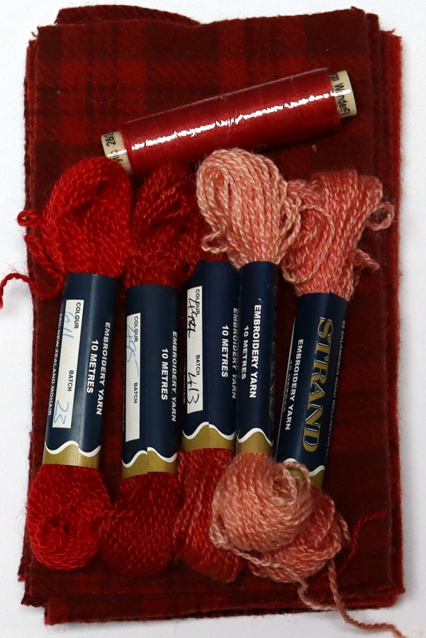Wooly Treasure Bags - hand dyed wool fabric and wooly threads to match plus embellishments.