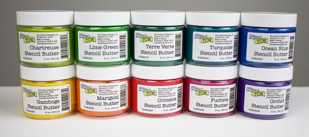 Delicious, spreadable Stencil Butter has a shimmer and shine that spreads easily with a palette knife. It has the body of a soft modelling paste that holds its peaks and valleys for texture and interest and cleans easily with water. (be sure to rinse your tools immediately after use)Perfect for spreading through stencils, finger-painting, brush-painting and much more. These colours blend beautifully with each other as well as with the Metallic Pastes.