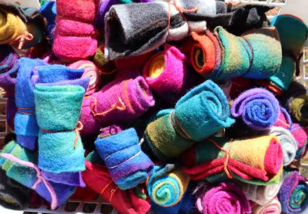 Mini handdyed prefelt rolls approximately 75 cm in length. Widths vary.
