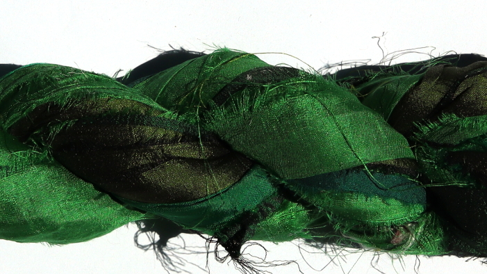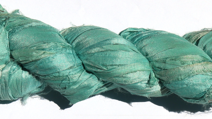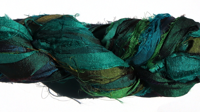 High quality pure silk hanks. 50 - 60 metres / hank. Ribbon width varies, but is approximately 2 cm.