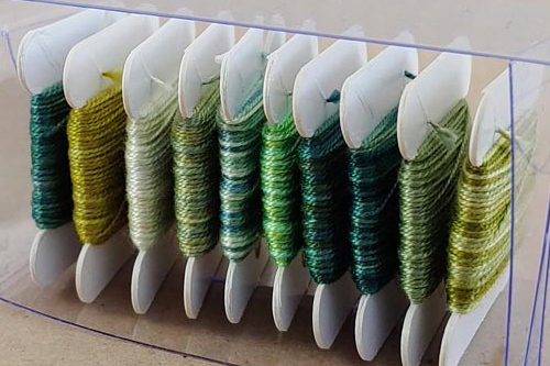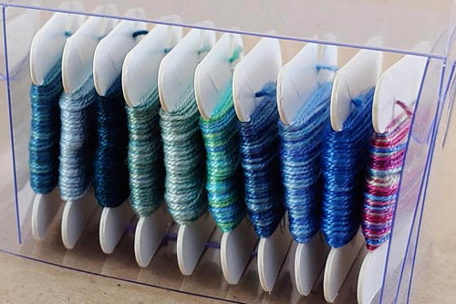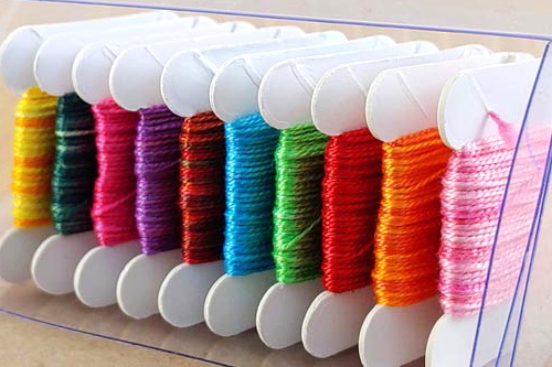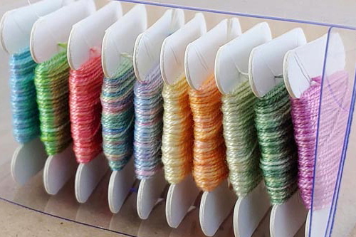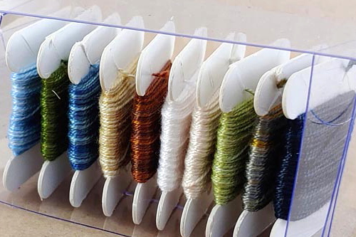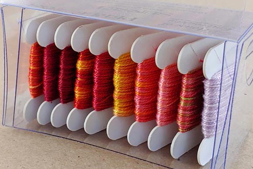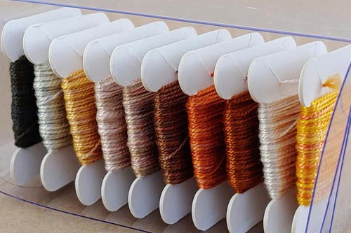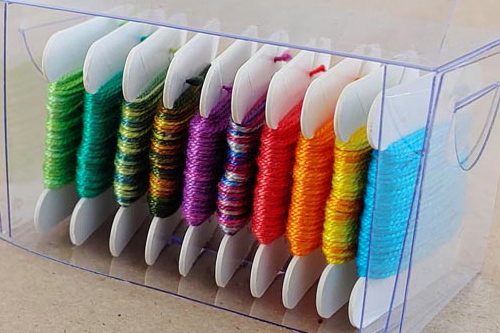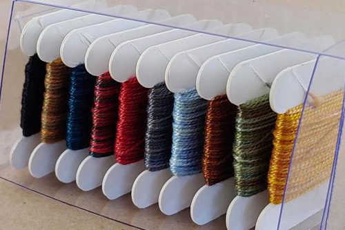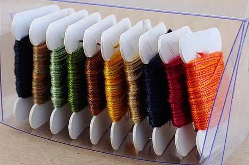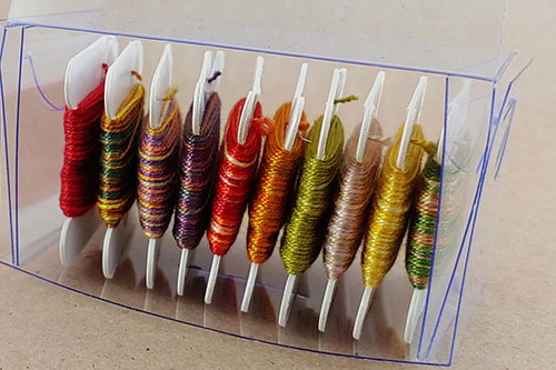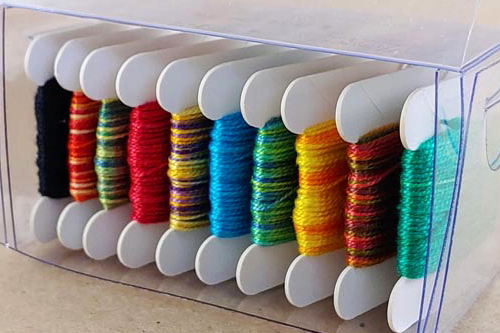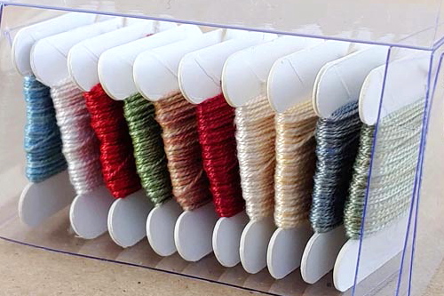 Each coloured thread is pre-wound onto a bobbin, 5 m per bobbin, allowing you to begin projects without having to decant individual twists onto your own cards.