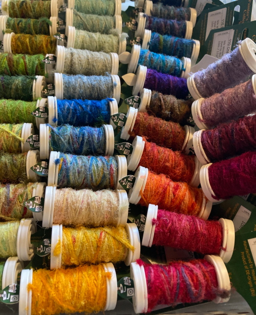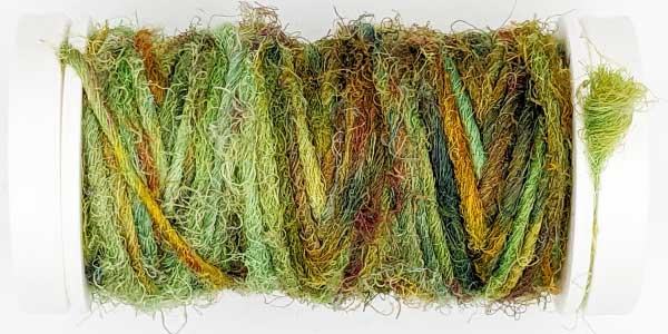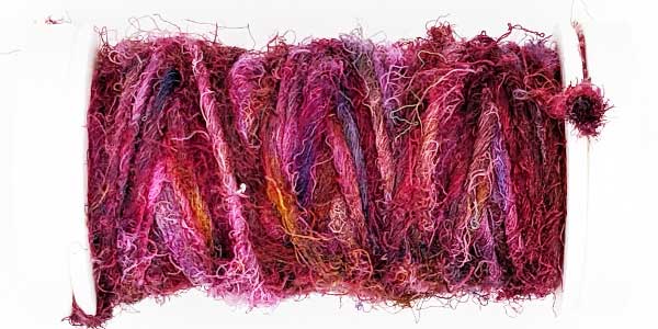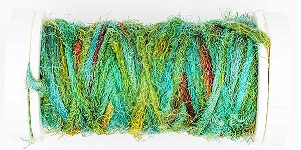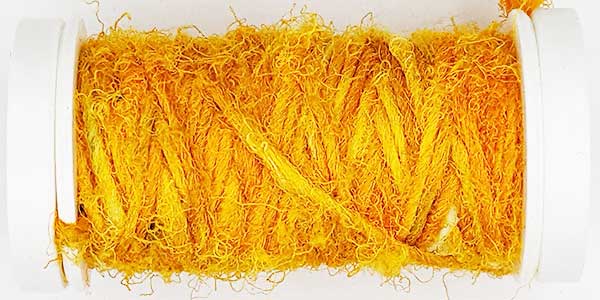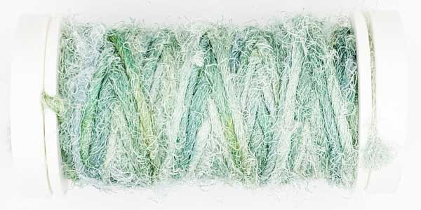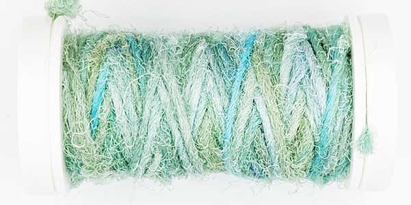Silk Whisper is spun from recycled silk chiffon. A great, unevenly spun effect thread that can be used for almost all textile techniques. Coral knots, chain stitch band, woven band, couching techniques - with the right needle it becomes child's play.