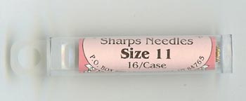 | Size 11 Sharp Needles Sharps needles are best known as "all purpose" hand sewing needles. They are longer and finer than the Betweens/Quilting needle. Sharps are also shorter and finer than Straw needles. Some prefer Sharps needles for simple mending tasks, others like it for hand applique and still others prefer to use Sizes 8 and 9 for hand quilting. The Size 11 Sharps is extremely fine and much shorter than the Size 11 Straw needle. For those with small hands, this needle is preferred for hand applique. | | Size 10 Sharp Needles The Size 10 Sharps is thin and much shorter than the Size 10 Straw needle. It is slightly longer and a little thicker than the Size 11 Sharps. For those with small hands, this needle is preferred for hand applique. | | Size 9 Sharp Needles The Size 9 Sharps is thicker and longer than the Size 10 Sharps needle. Many quilters who use a hoop or a frame for hand quilting prefer this size. | | Size 8 Sharp Needles The Size 8 Sharps is slightly thicker and longer than the Size 9 Sharps needle. Many quilters who use a hoop or a frame for hand quilting prefer this size. |