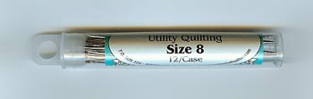| Size 11 Utility Quilting Needles Utility Quilting Needles are the needle of choice for quilters using large stitches. A long, sturdy shank prevents the needle from bending, while the embroidery eye of the Utility Quilting needle allows for easy threading of perle cotton, crochet cotton, or yarn. 12 needles per package. | | Size 10 Utility Quilting Needles A long, sturdy shank prevents the needle from bending, while the embroidery eye of the Utility Quilting needle allows for easy threading of perle cotton, crochet cotton, or yarn. 12 needles per package. | | Size 9 Utility Quilting Needles A long, sturdy shank prevents the needle from bending, while the embroidery eye of the Utility Quilting needle allows for easy threading of perle cotton, crochet cotton, or yarn. 12 needles per package. | | Size 8 Utility Quilting Needles A long, sturdy shank prevents the needle from bending, while the embroidery eye of the Utility Quilting needle allows for easy threading of perle cotton, crochet cotton, or yarn. 12 needles per package. |