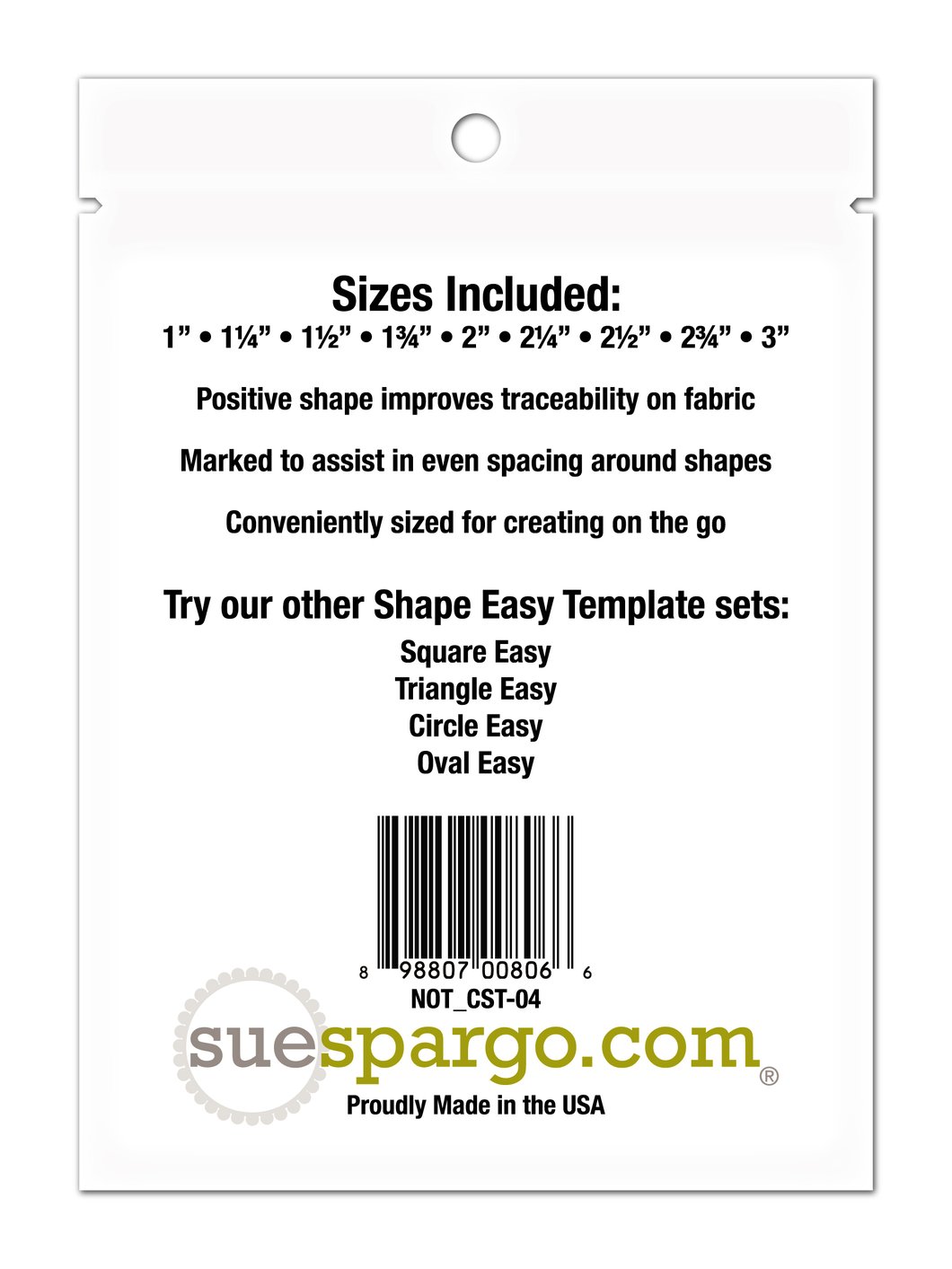 Each template contains markings to plan, mark, and evenly space your stitches around each shape.