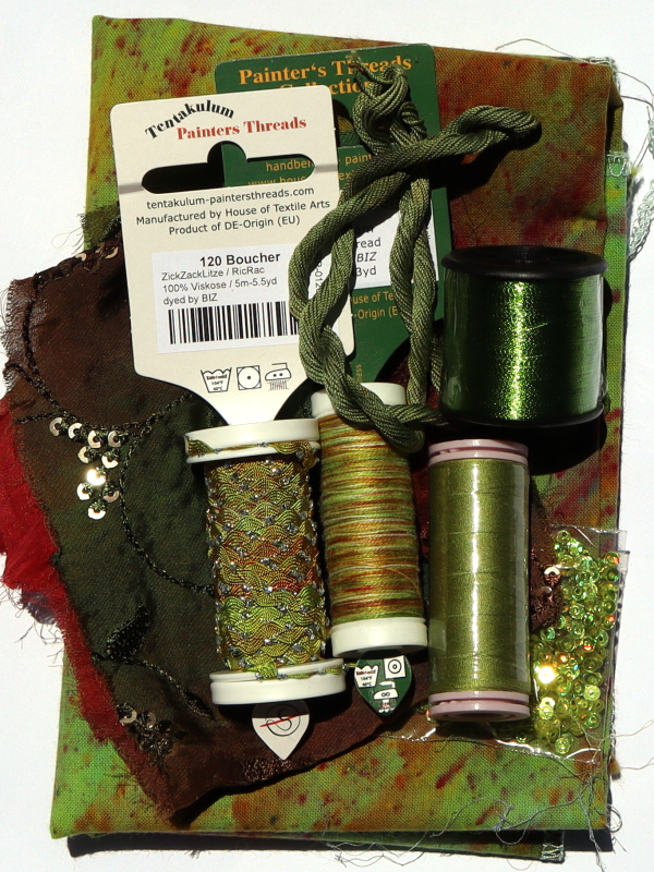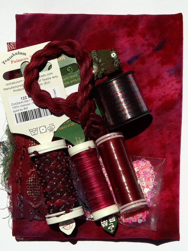Plus an assortment of hand dyed threads and embellishments in matching colours.